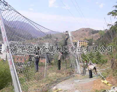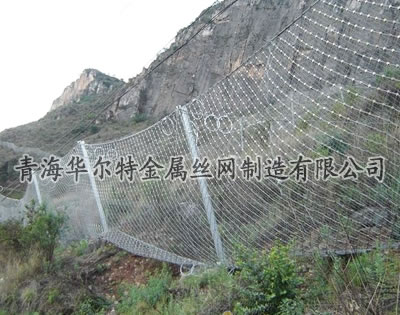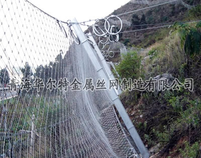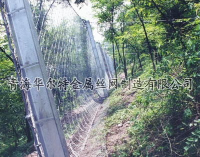 被動(dòng)防護(hù)網(wǎng)是由鋼絲繩網(wǎng)、環(huán)形網(wǎng)、固定系統(tǒng)、減壓環(huán)和鋼柱四個(gè)主要部分構(gòu)成。鋼柱和鋼絲繩網(wǎng)連接組合構(gòu)成*個(gè)整體,對(duì)所防護(hù)的區(qū)域形成面防護(hù),從而阻止崩塌巖石土體的下墜,起到邊坡防護(hù)作用。
